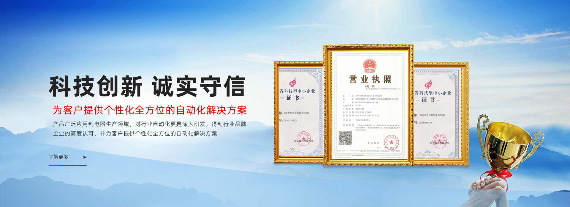 樂清市伊宏自動(dòng)化設(shè)備有限公司創(chuàng)立于2013年,與中國(guó)電器之都樂清市柳市鎮(zhèn)相鄰,公司擁有現(xiàn)代化廠房,是一家專業(yè)研發(fā)低壓電器自動(dòng)化生產(chǎn)的科技型企業(yè),擁有多項(xiàng)電器自動(dòng)化生產(chǎn)設(shè)備專利,公司生產(chǎn)銷售的設(shè)備有各種微型斷路器裝配生產(chǎn)線,各種斷路器滅弧室自動(dòng)化生產(chǎn)設(shè)備,各種斷路器磁芯自動(dòng)化生產(chǎn)設(shè)備,各種斷路器磁組件及機(jī)械聯(lián)動(dòng)機(jī)構(gòu)組件自動(dòng)化生產(chǎn)設(shè)備,各種斷路器組件焊接設(shè)備,以及機(jī)器人協(xié)同自動(dòng)化配套設(shè)備定制。